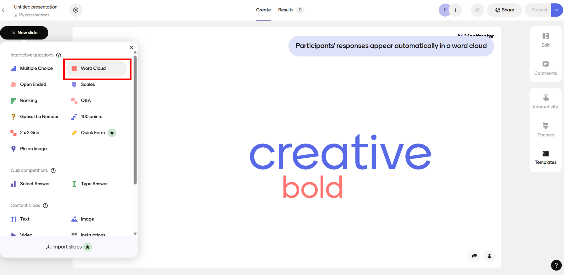 멘티미터 활용하기 ① 워드클라우드로 분위기 여는 법