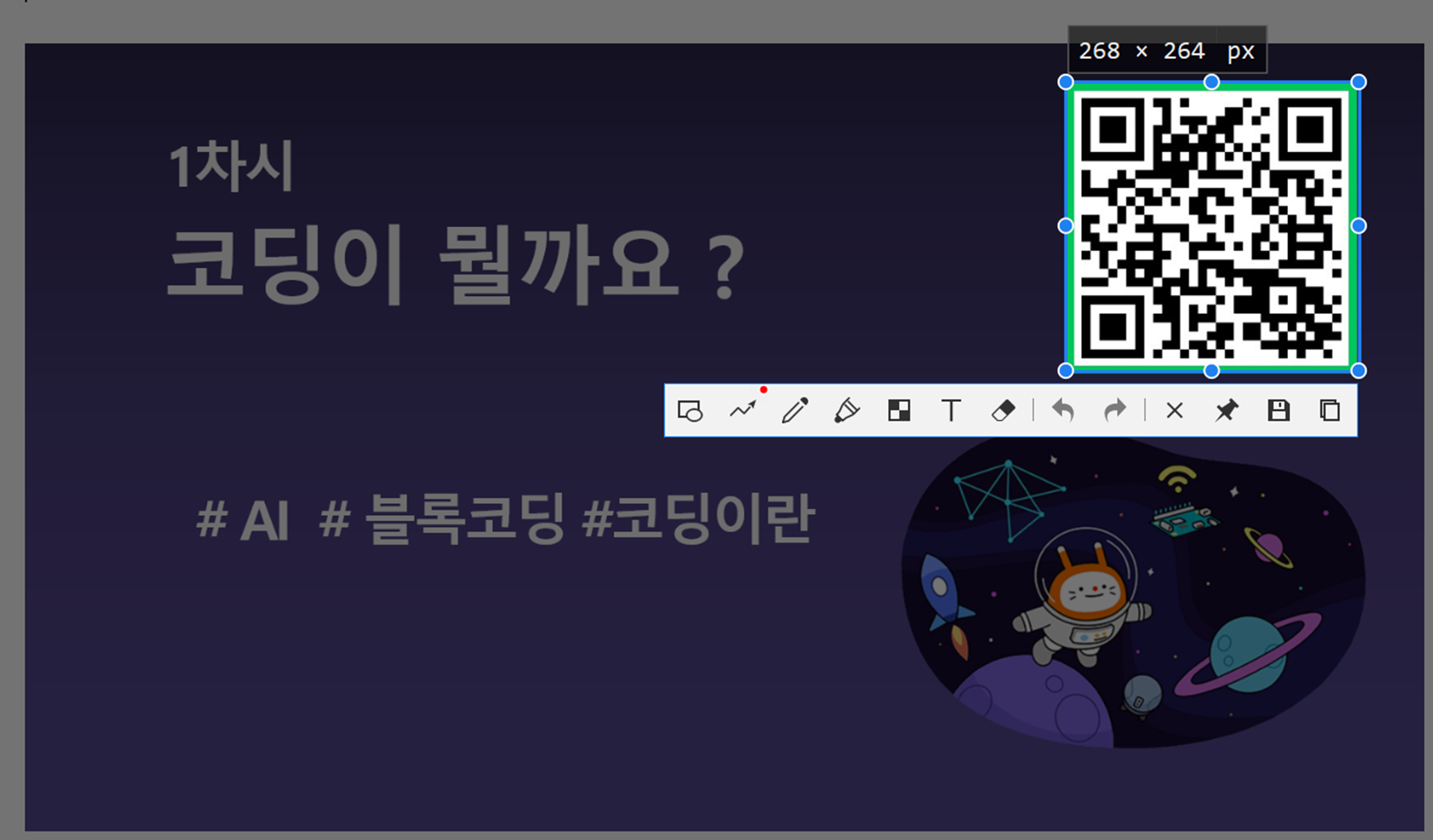 수업 시 QR 코드 공유할 때 사용하려고 시작했으나, 지금은 캡처 툴로도 쓰고 있네요.